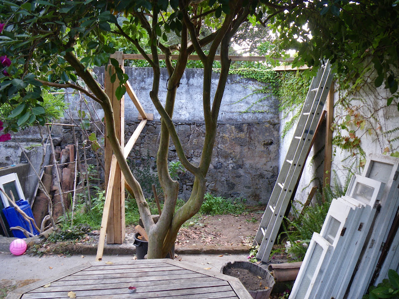 On a entreposé du bois pour la construction et du costaneiras (des chutes de bois) pour des bricolages et des cabanes. Au pont il y a une pile de bois que l'on monte progressivement au jardin.